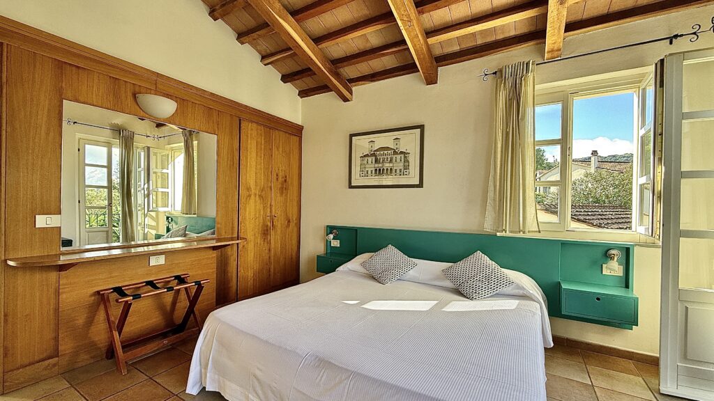Posizionate al primo piano di una villetta immersa nel vasto giardino dell’Hotel, queste camere regalano vedute marine tramite due porte finestre e un terrazzino che si affaccia sul giardino circostante . Arredate con gusto, dotate di tavolino, sedie e comodi lettini prendisole, queste camere offrono un rifugio di intimità e serenità per coloro che desiderano un soggiorno privato senza dover rinunciare alla bellezza della vista sul golfo.